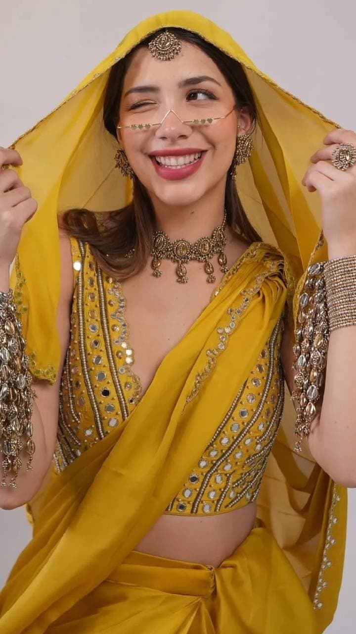 Facelet is a completely new fashion, which brides wear on their face like glasses. This fancy look will be seen a lot this time.