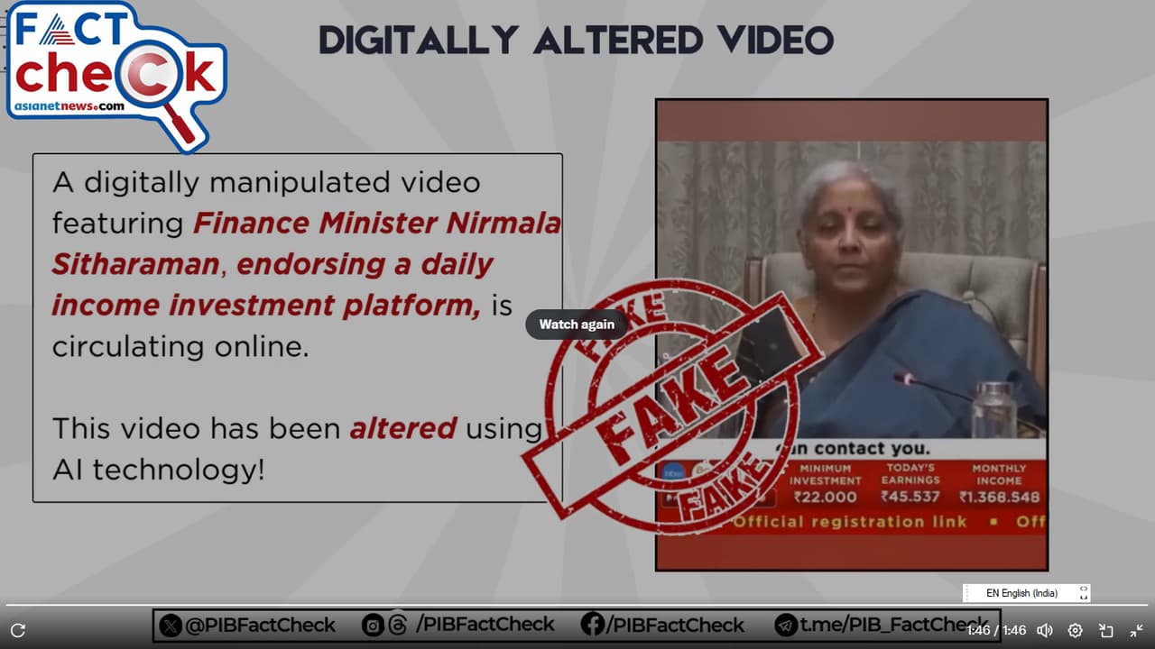 In a video viral viral on social media, it is being claimed that Union Finance Minister Nirmala Sitharaman is promoting an investment platform in which she is seen promising that you can earn up to 25.5 lakhs every month with an investment of Rs 22,000.