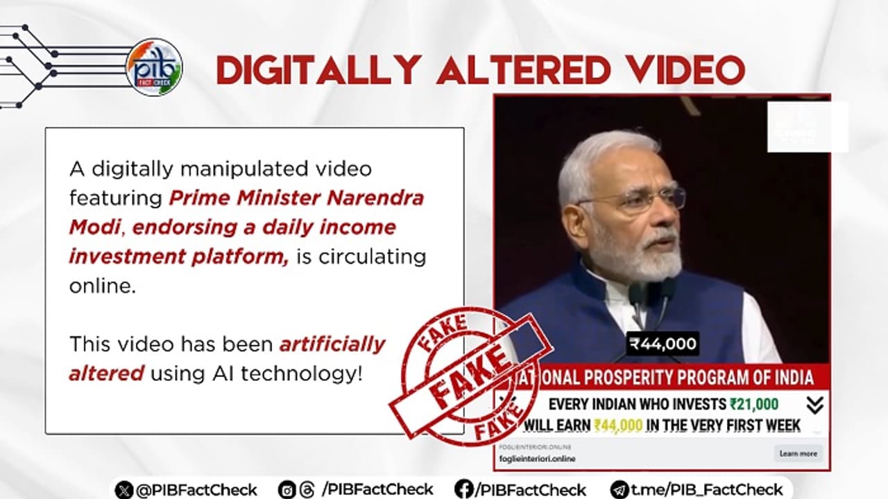 A fake video falsely shows PM Modi endorsing an investment scheme promising to turn Rs 21,000 into Rs 2 lakh. PIB Fact Check has confirmed the video is a digitally altered scam, clarifying the government has not launched any such program.