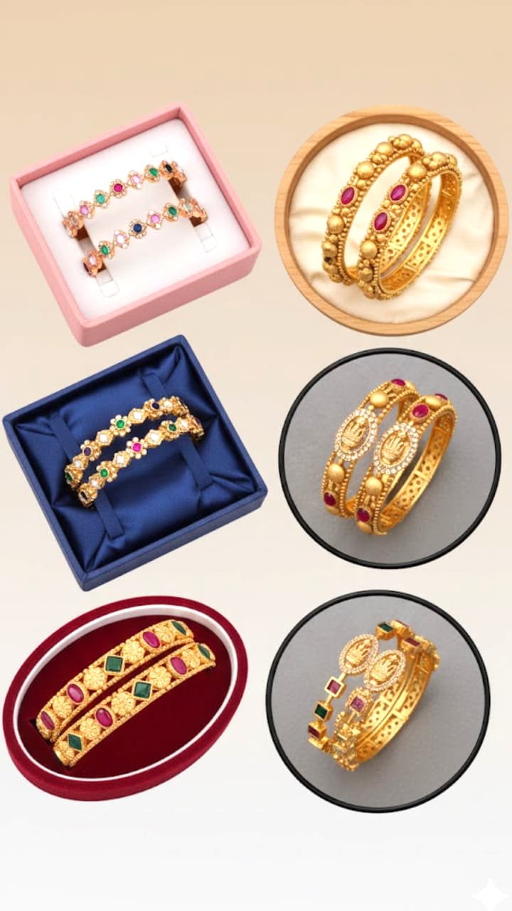 Buying 22kt Gold Bangle is out of budget. In such a situation, choose 4 piece Kada, which are floral pattern, gem and gold plated. This design looks exactly like real gold. You also try it.
