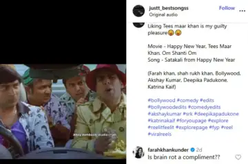 The post caption read, “Liking Tees Maar Khan is my guilty pleasure.” Farah Khan’s playful response to the reel was – “Is brain rot a compliment??” A screenshot of her comment has gone viral, with fans praising her lighthearted reaction.