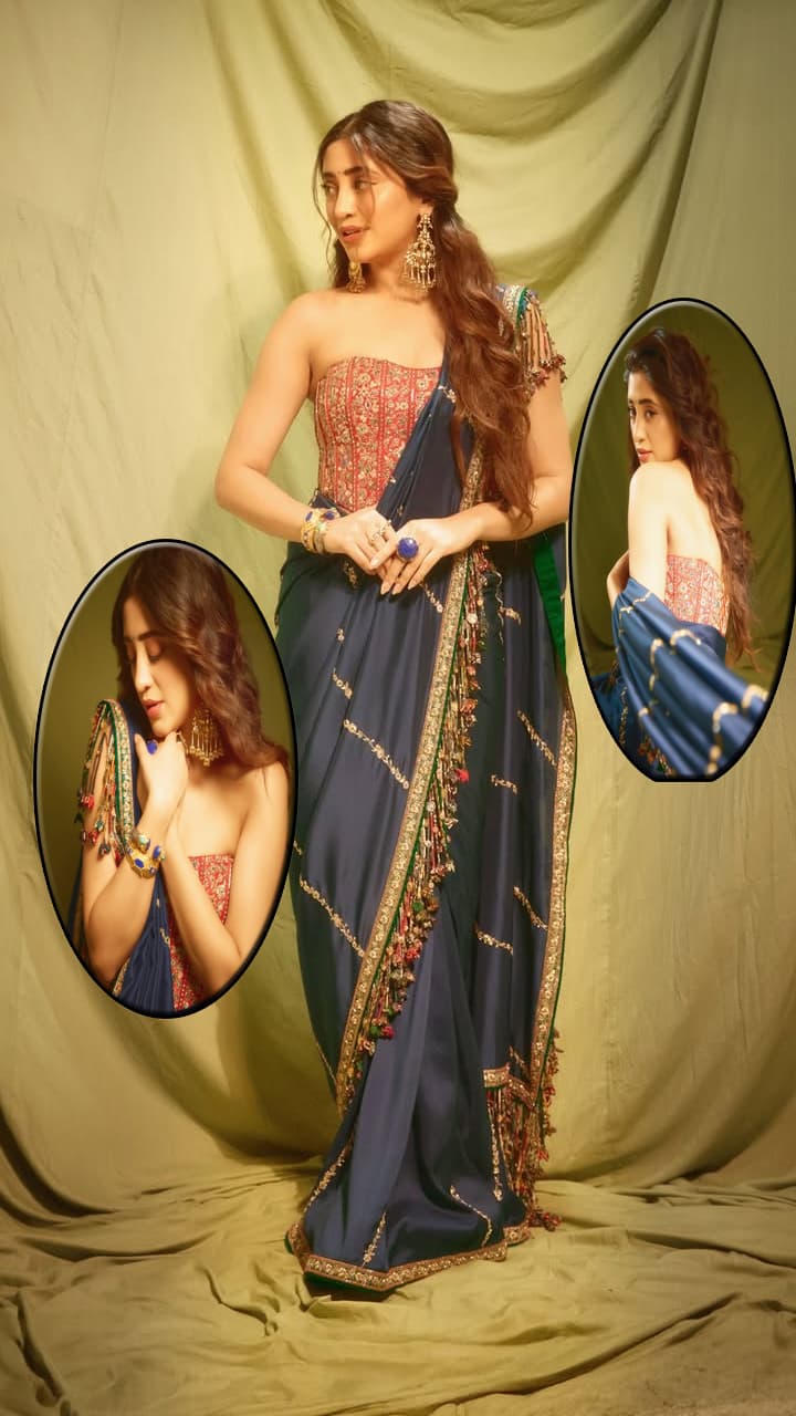 If you want to steal the show at your bestie’s wedding, then you can take such saree styling tips from Kiara. She is wearing Shiyari saree with sequence corset blouse.
