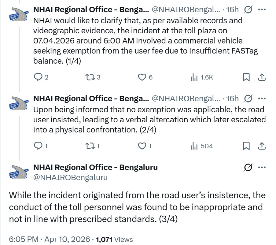 The National Highways Authority of India (NHAI) has also responded. In a statement, it said that, based on initial records and video evidence, the incident involved a commercial vehicle seeking exemption due to low FASTag balance.