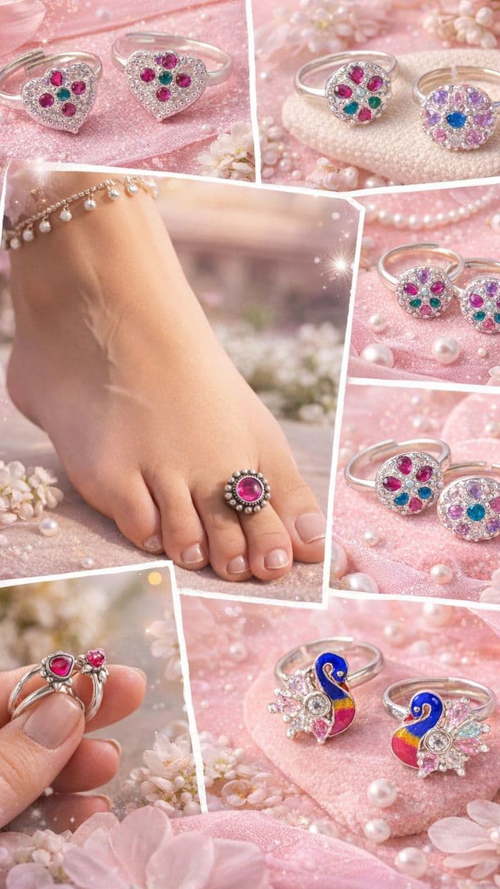 Many people like to wear toe rings in heart shape, this design is special for them, so you can take toe ring with pink stone in this kind of heart shape style.