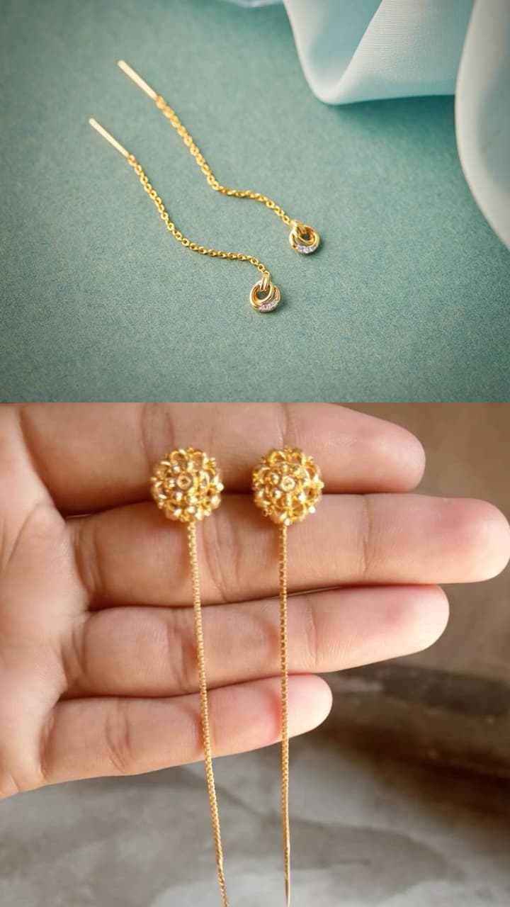 Fine needle and thread earrings, snake like sleek designs in just 3 grams of gold. Earring Sui Dhaga Sleek Designs In 3 Gram Gold Only