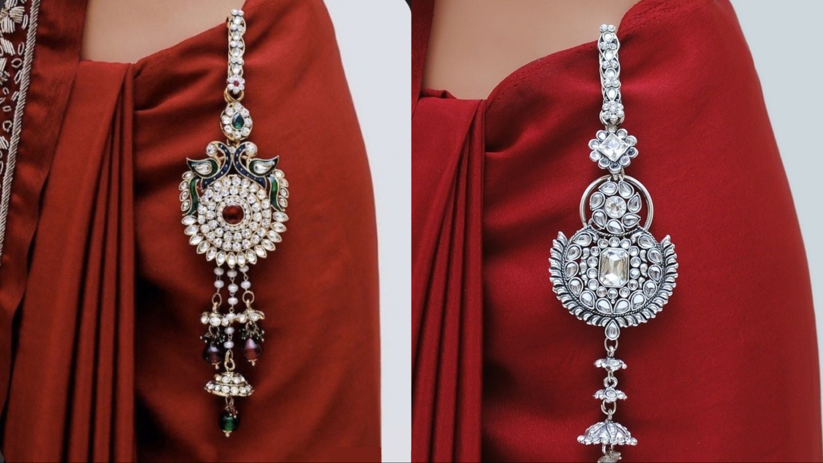 If the saree is heavy, there is no use of wearing heavy waistband. This will make the outfit an over look. Instead you can choose a simple oxidated waste bunch. It comes on a single piece, which will look very esthetic with beautiful looks. You will find such beautiful designs in the market in the market, Morni or other variety.