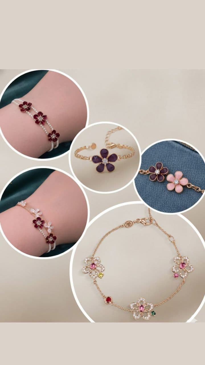 Floral Bracelet: The light of flowers will shine on your hands, wear 5 floral bracelets. Floral Bracelet Design For Valentine Day Outfit
