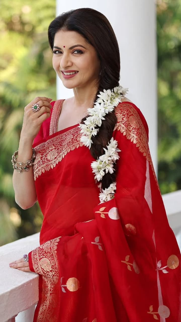 Avoid heavy curls and waves and leave your hair open. Adopting a traditional look, Aamna Sharif has worn multi-strand gajra, which looks heavy + royal. You can try it with lehenga.