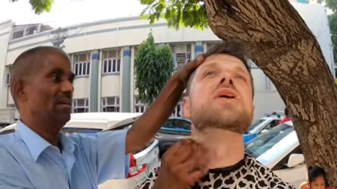 Here we are sharing another video, this foreigner is looking for Indian street massage. In particular, the Cosmic Indian Head Massage, which is considered to be one of the oldest traditions of India, the tourist tells that he knows the late Baba Sen, now no one will be able to do massage like him, but in India, head massage is a thousands of years old tradition which has been passed down from generation to generation. Everywhere there should be a haircut or shaving person who can make you feel relaxed. During this time, he meets Uncle Deendayal Sharma, who clean shaves him and gives him a proper massage.