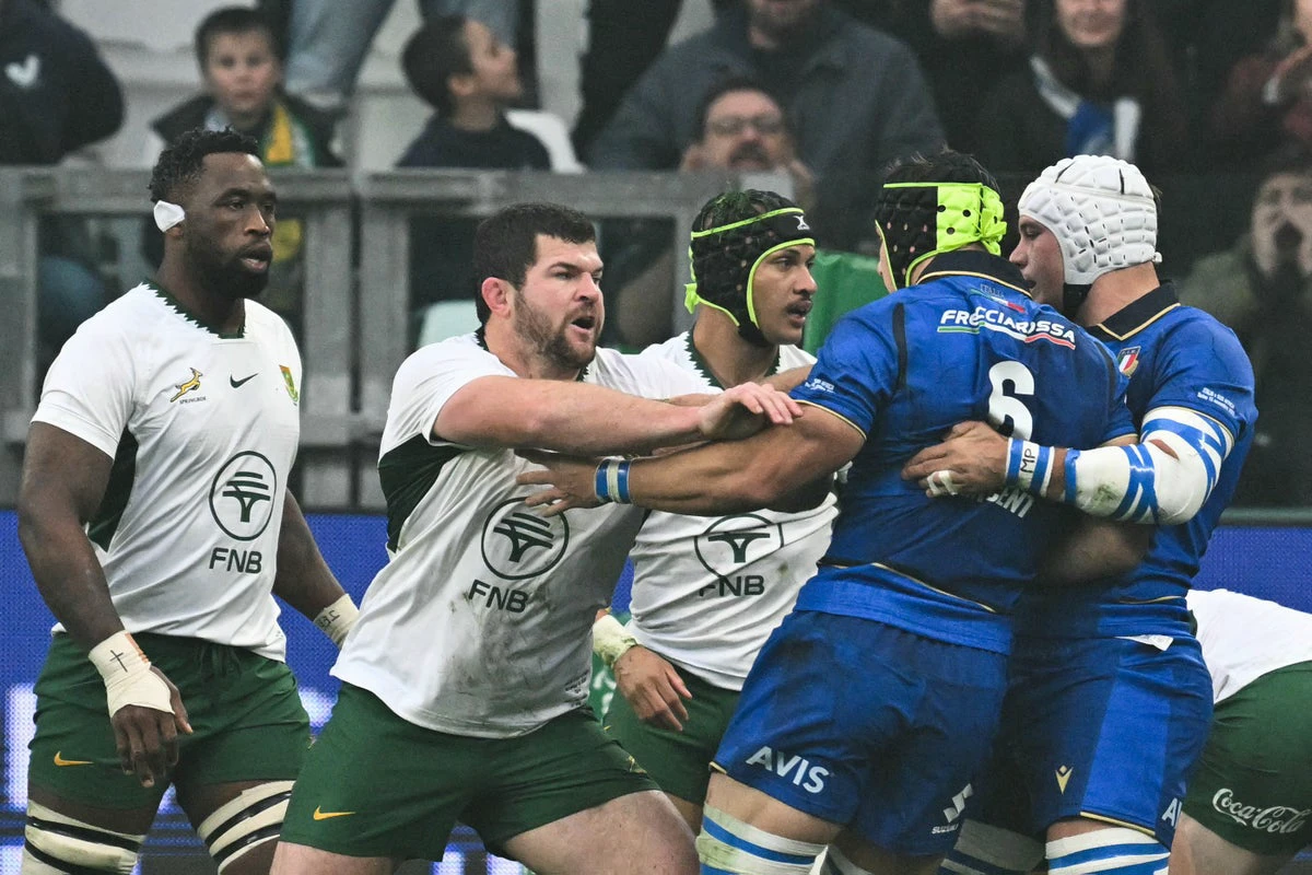 The 34-year-old was deemed to have made direct shoulder-to-head contact with Italy fly half Paolo Garbisi just 12 minutes into the contest and after consultation with TMO Tual Trainini, referee James Doleman determined that Mostert’s action was always illegal as he made no attempt to wrap for the tackle. There was therefore no mitigation available, with the deliberate nature of the challenge resulting in a permanent red card – meaning the Springboks are not permitted to replace him.