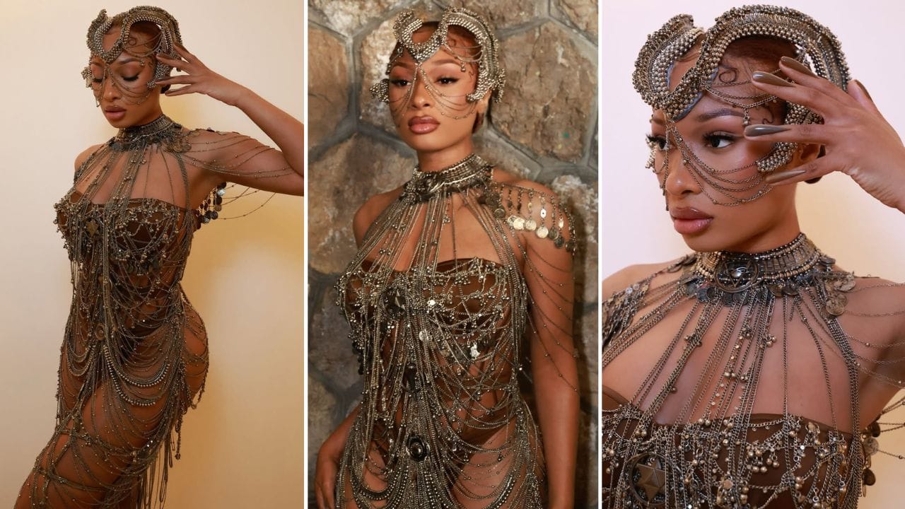 4. Megan Thee Stallion in Chakric Drape Chain Gown by Gaurav Gupta
