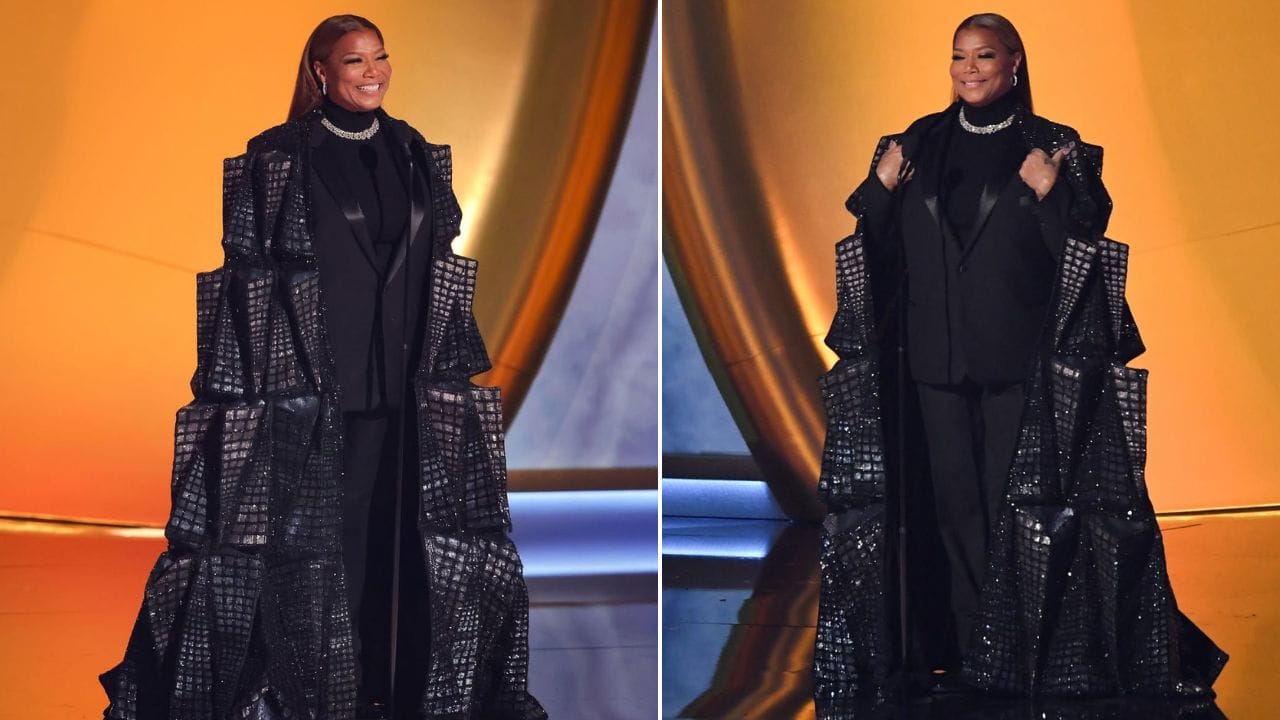 Queen Latifah presented the Dr Dre Impact Award wearing an off-the-runway floor-length cape with three-dimensional details over a black suit. The cape featured 60 pyramidal structures in four sizes, hand-embroidered with thread and sequins. Rahul Mishra revealed that the ensemble took 12,000 hours to create, blending futuristic silhouettes with meticulous craftsmanship.