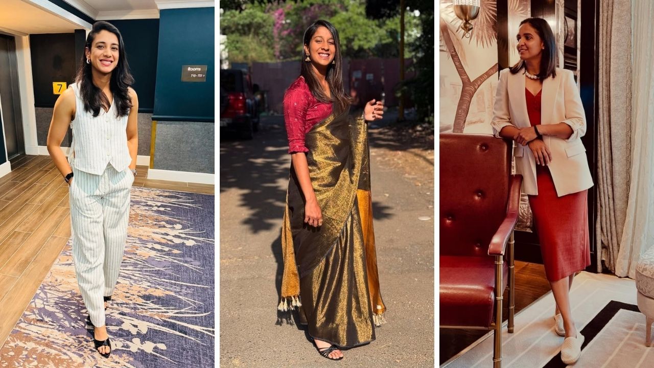 This look of Indian women’s cricket team captain Harmanpreet Kaur is simple, elegant and graceful. She is wearing a mid-length red dress with V neckline, with which she has paired an off-white blazer. She has given a complete touch to her classy look with simple straight hairstyle and pearl neckpiece.