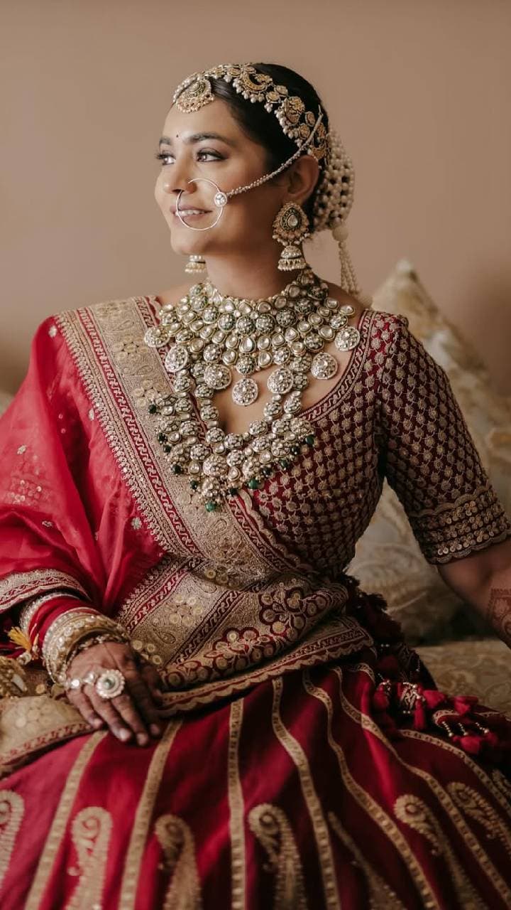 Embroidered sweetheart neckline blouses will be the first choice of brides in the year 2025. The heavy zari work and neckline in such blouses make them fancy.