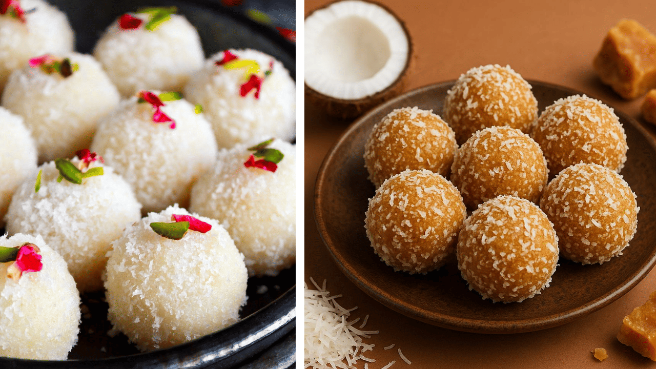 Fresh grated coconut sweetened with jaggery makes this ladoo creamy and luscious, offering tropical flavours without refined sugar.