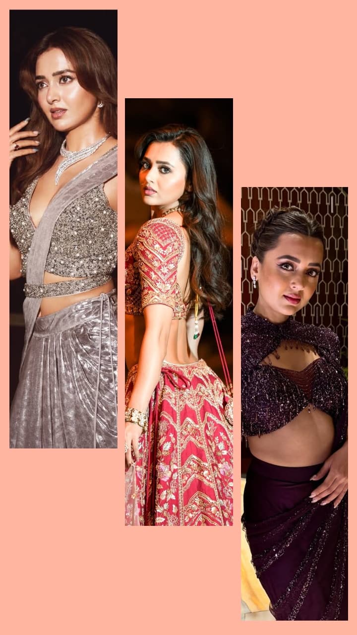 Tejasvi Prakash wore a sequin blouse paired with a silver predraped saree. Along with this, the Jarkan necklace looks very beautiful.