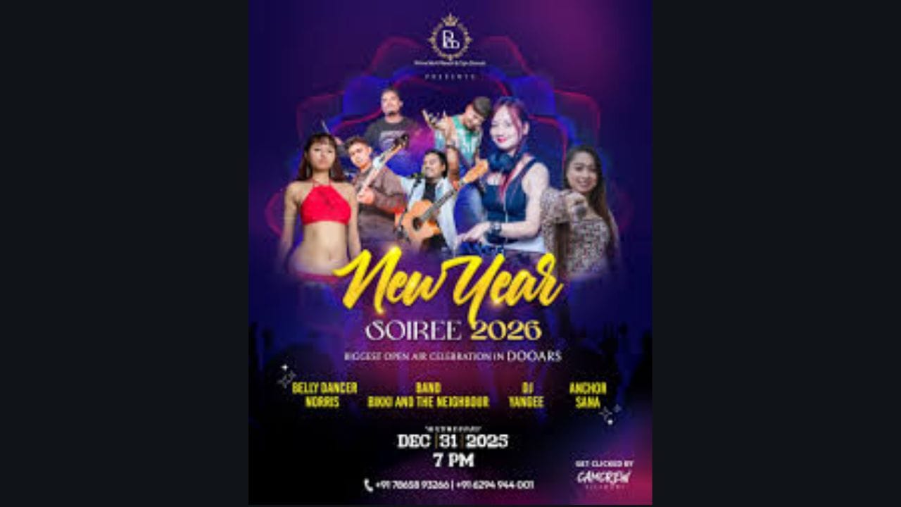 A large-format celebration at the Guwahati Exhibition and Convention Centre, featuring live music by Dhun Raag Band, DJ Maxx on the console, and a belly dance performance that adds a visual edge to the night. Designed for those who enjoy structured entertainment and a classic countdown setup.