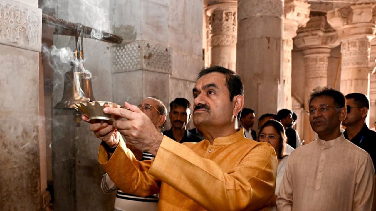 Gautam Adani and his wife, Priti Adani, visited the Shri Ajitnath Bhagwan Shwetamber Jain Derasar in Gujarat’s Taranga hills on Akshaya Tritiya. They offered prayers and Adani discussed plans to improve facilities for pilgrims at the shrine.