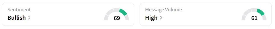 Despite the intraday decline, retail sentiment on Stocktwits turned ‘extremely bullish’ from ‘bullish’ a day earlier, accompanied by ‘extremely high’ message volumes.
