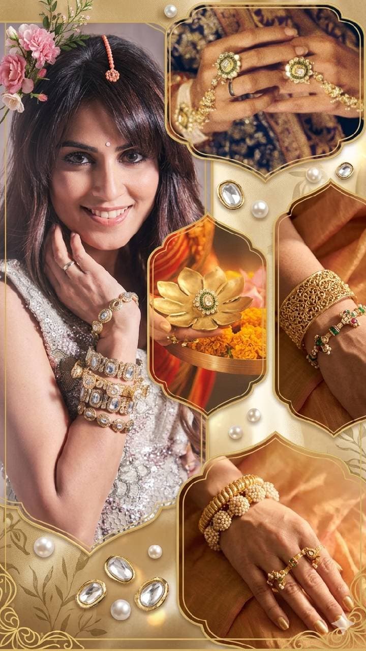 Genelia D’Souza loves to wear different designs ranging from statement bangles, bracelets to hathphools. You can also wear Kundan bangles in one hand with one piece.