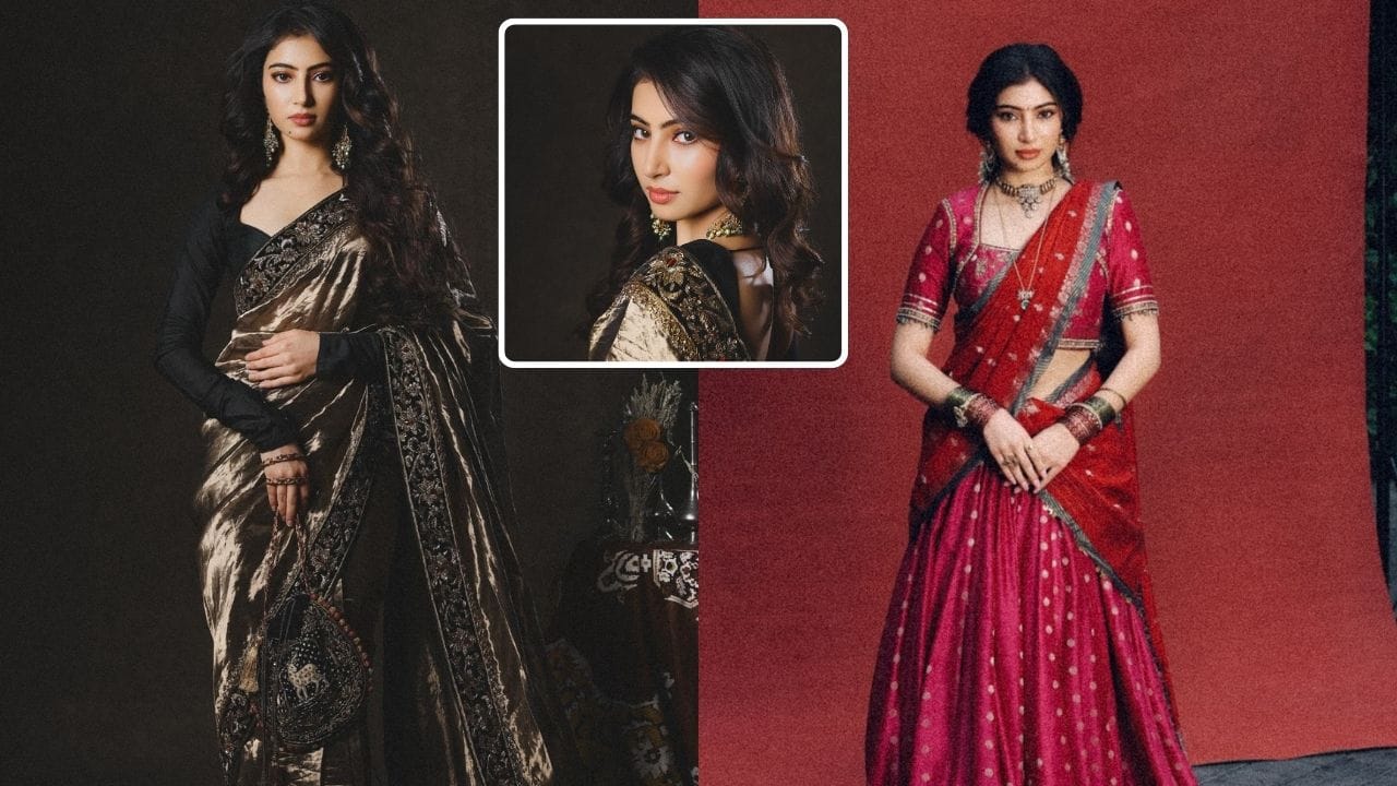 The actress has worn a full sleeve blouse with this saree, which is creating a good contrast with the border. Talking about jewellery, Sara is wearing only heavy earrings. Who are balancing the look.