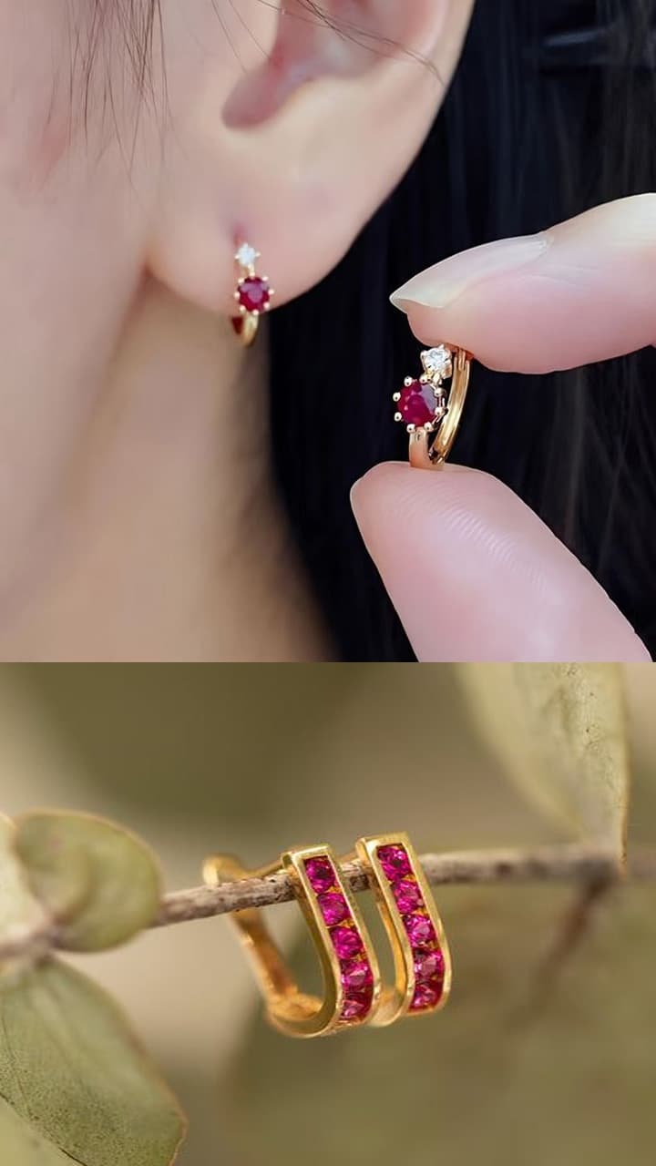 If your beloved is in class 10-12, then you can gift her this type of earring. Small hoop earrings decorated with gems and green stones will look great on her.