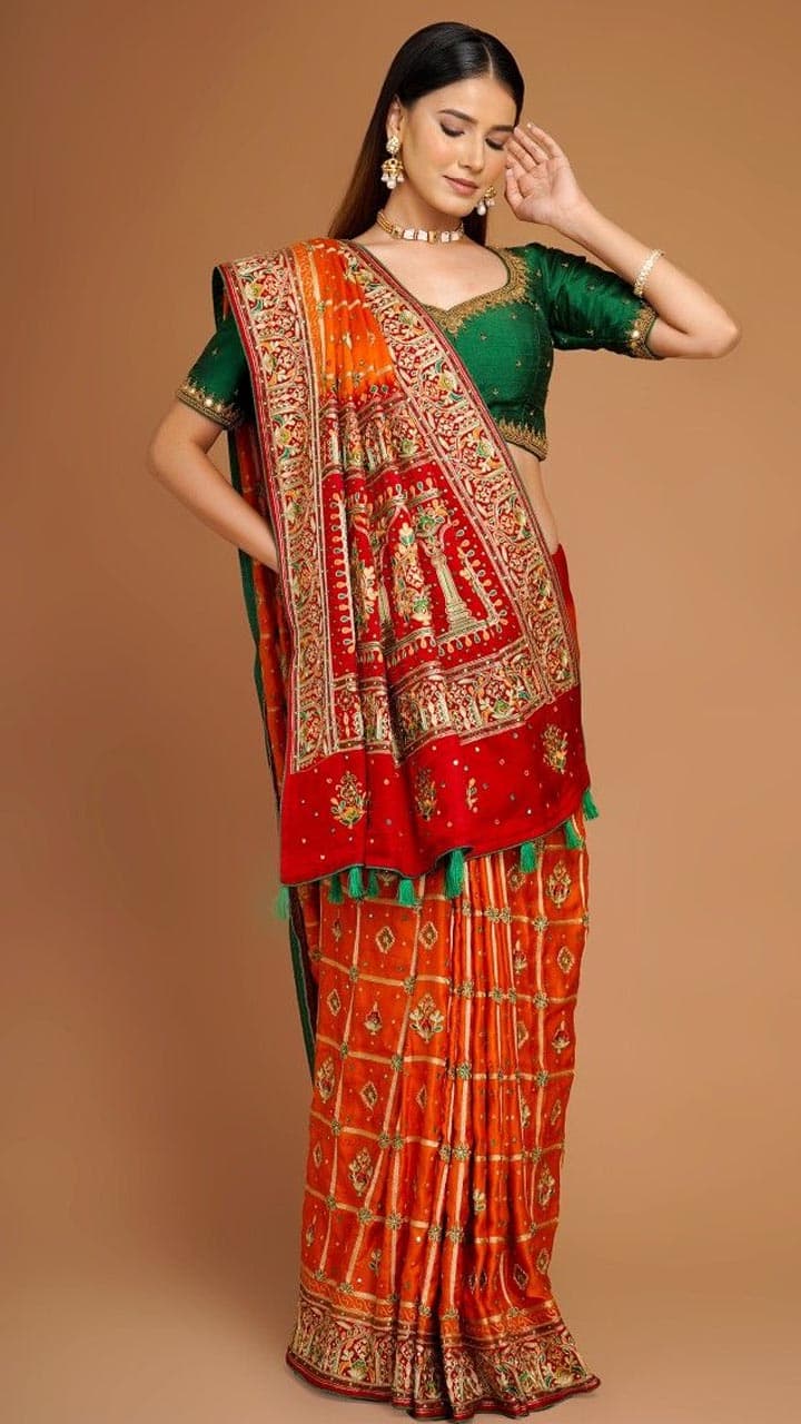 Gharchola Saree Designs: Whether your budget is 8 thousand or 80 thousand, Gharchola saree gives the best option at every price. Its colour, finish, fabric and craft gives you a real Gujarati girl look. Add one such saree to your wardrobe.