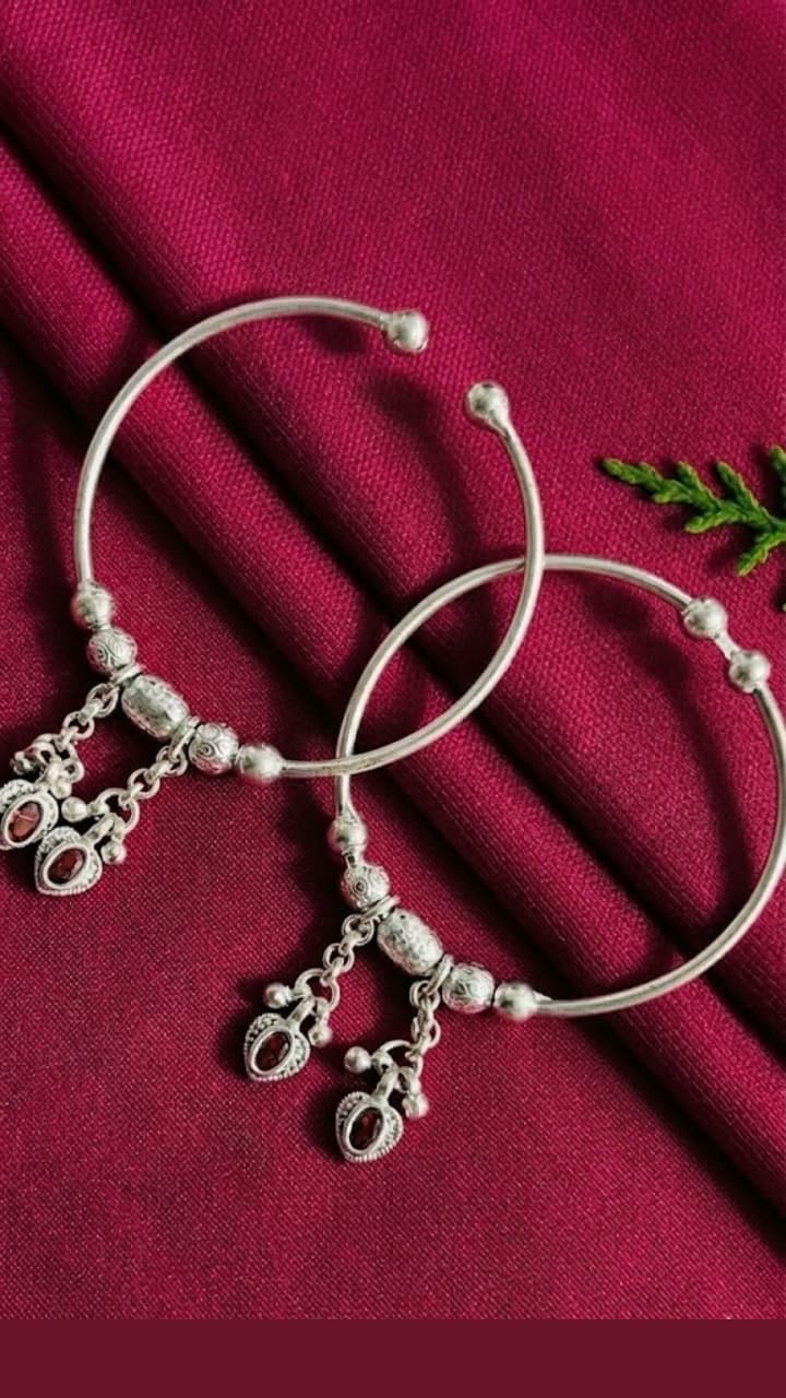Ghungroo Bangles: The tinkle of silver in little hands, 7 silver kada patterns with Ghungroo. Ghungroo Bangles 10 Gram Silver Kada