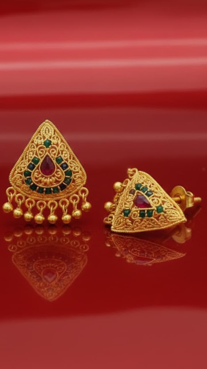 This small drop style gold earring design for young professionals adds a stylish touch to the office look without looking overdressed. These have a slight pendant, which gives an elegant look to the face.