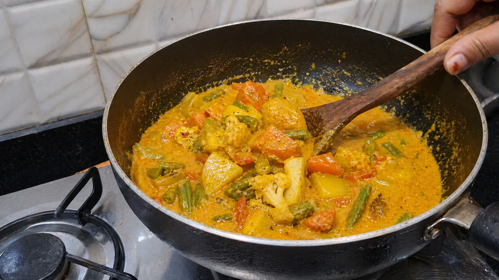 Vegetable Goan Curry Fresh coconut is used in it, which gives a creamy and mild sweetness. Adding tamarind to it brings sourness. Adding spices like dry red chilli, garlic, ginger along with it gives it an aromatic and special flavour.