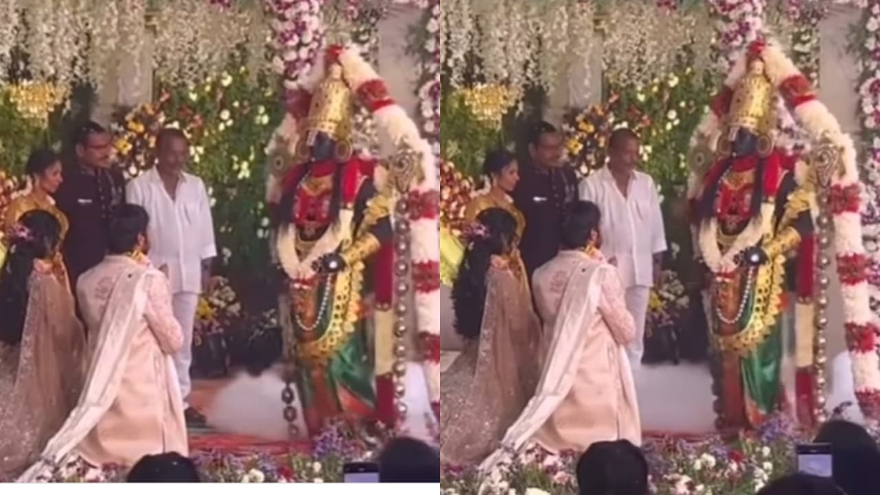 A Bengaluru wedding video showing a man dressed as Lord Venkateswara blessing the bride and groom has gone viral. The unique moment, resembling a divine appearance, has sparked both amusement and debate online.