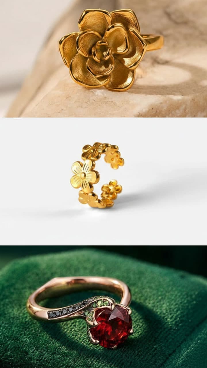 You can get this kind of rose design finger ring made in gold for your daughter, which has lots of petals and a thin gold band at the back.
