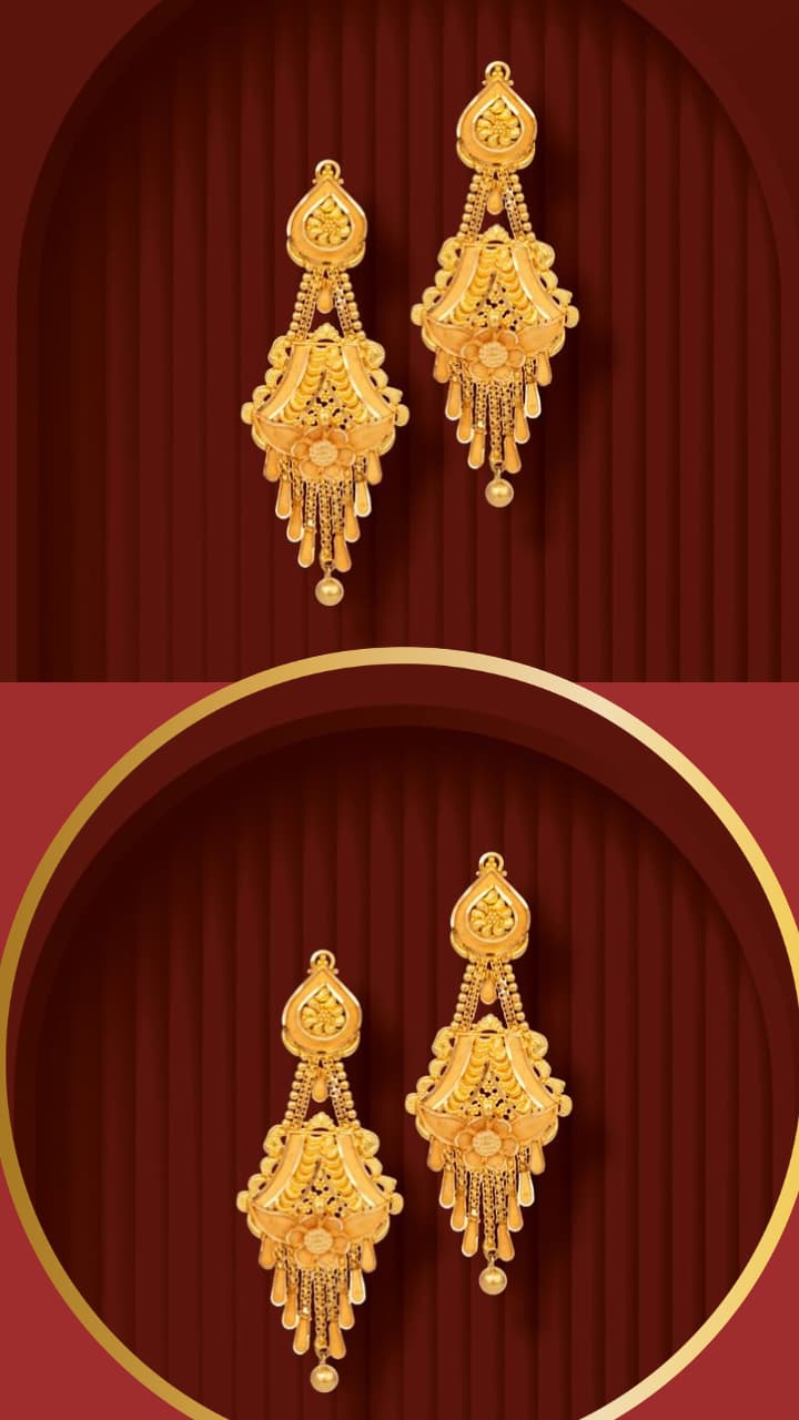 Jhala design with round circle motif is trendy and royal, which should be made in 22kt gold. Such earrings present a perfect combo of fusion + style, will give a glam look with Indian look.