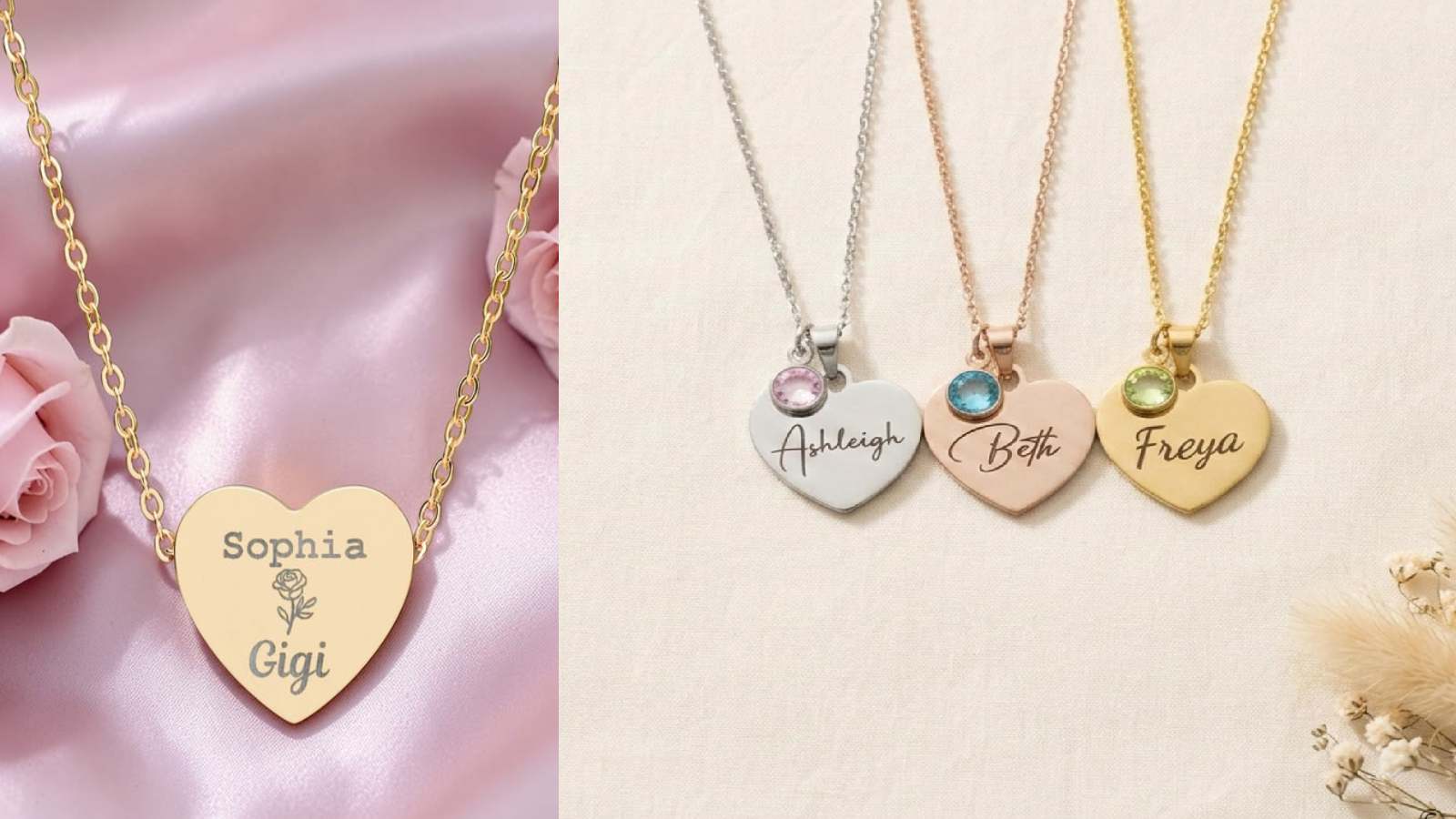 Heart shape and name pendants