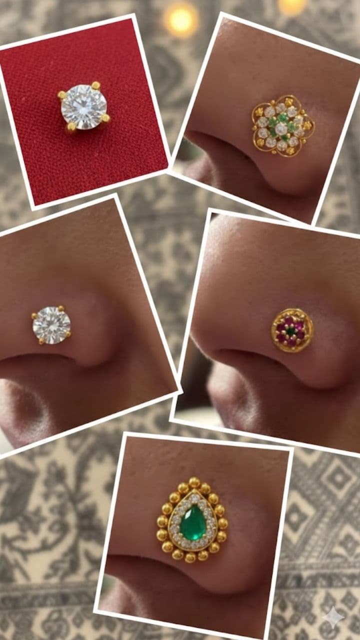 You will get this round shaped nose pin for less than one gram, and it also has pink and green stone work, which increases the shine of the nose.