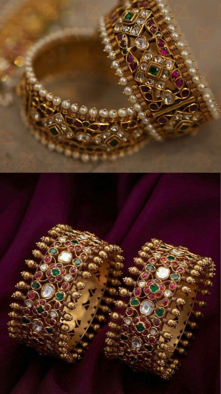Studded bracelets have been the first choice of women for years, even today girls are also liking this design very much. This inlay design of gems, pearls and kundan will give royalty to the hands.