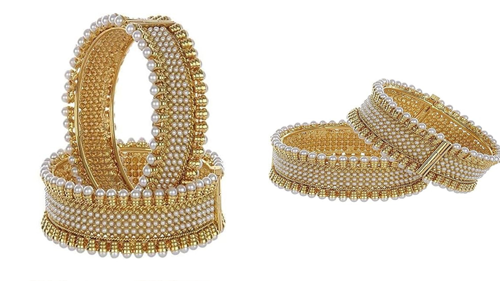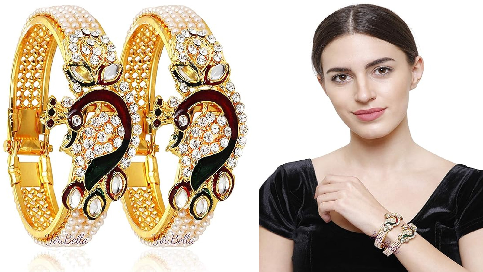 Gold plated bangles decorated with pearls are perfect for engagements and parties. Your look becomes stylish as soon as you wear it in your hands. This creates a very subtle look. You are getting this bracelet on Amazon for Rs 322. You can click on the link for more information.
