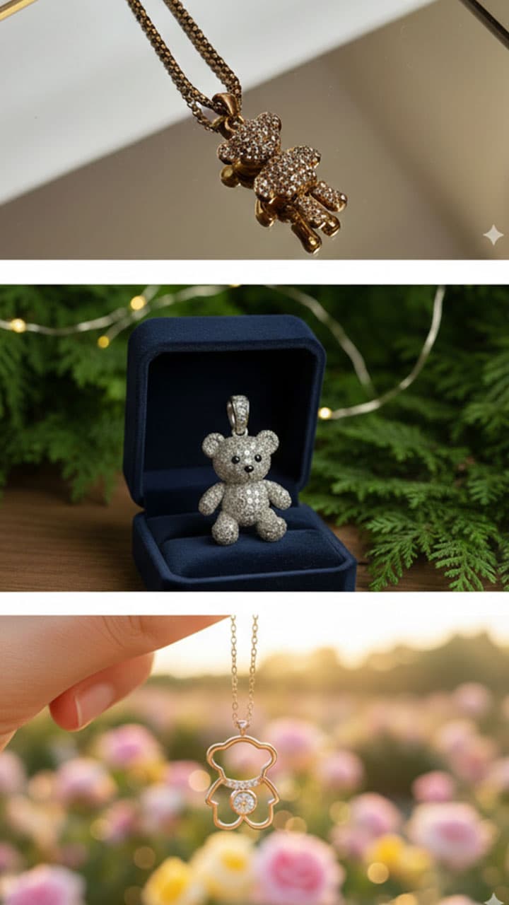 There is less gold in this type of stone pendant. But these pendants look quite heavy. You should get a small teddy bear design, which has detailing of red, blue or black colored stones.