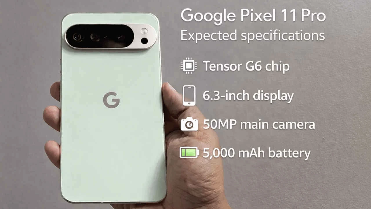 The Google Pixel 11 Pro is expected to sport a 6.3-inch LTPO AMOLED display. Under the hood, the handset could house the company’s yet-to-be-announced Tensor G6 chip, coupled with 16GB RAM and 256GB storage. Also, it may pack a 5,000 mAh battery with 45W wired charging support.