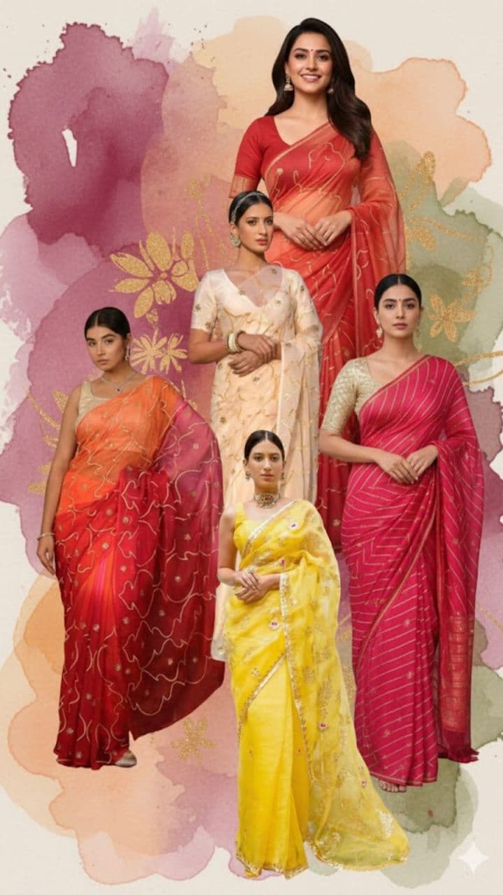 This design of raw gota patti jaal work saree is quite in trend in chiffon, diamond chiffon and georgette fabric. You will get this saree in single and shaded color.