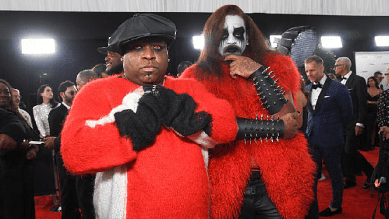 Ceelo Green and Kingston Callaway arrived in matching red outfits that felt more like themed stage costumes than red carpet fashion. The overpowering colour and styling created a sort of “character cosplay” mood, making the pair look ready for a music video skit rather than an awards ceremony. The vibe landed somewhere between “comic book villain promo” and “last-minute Halloween idea that accidentally made it to the Grammys”.