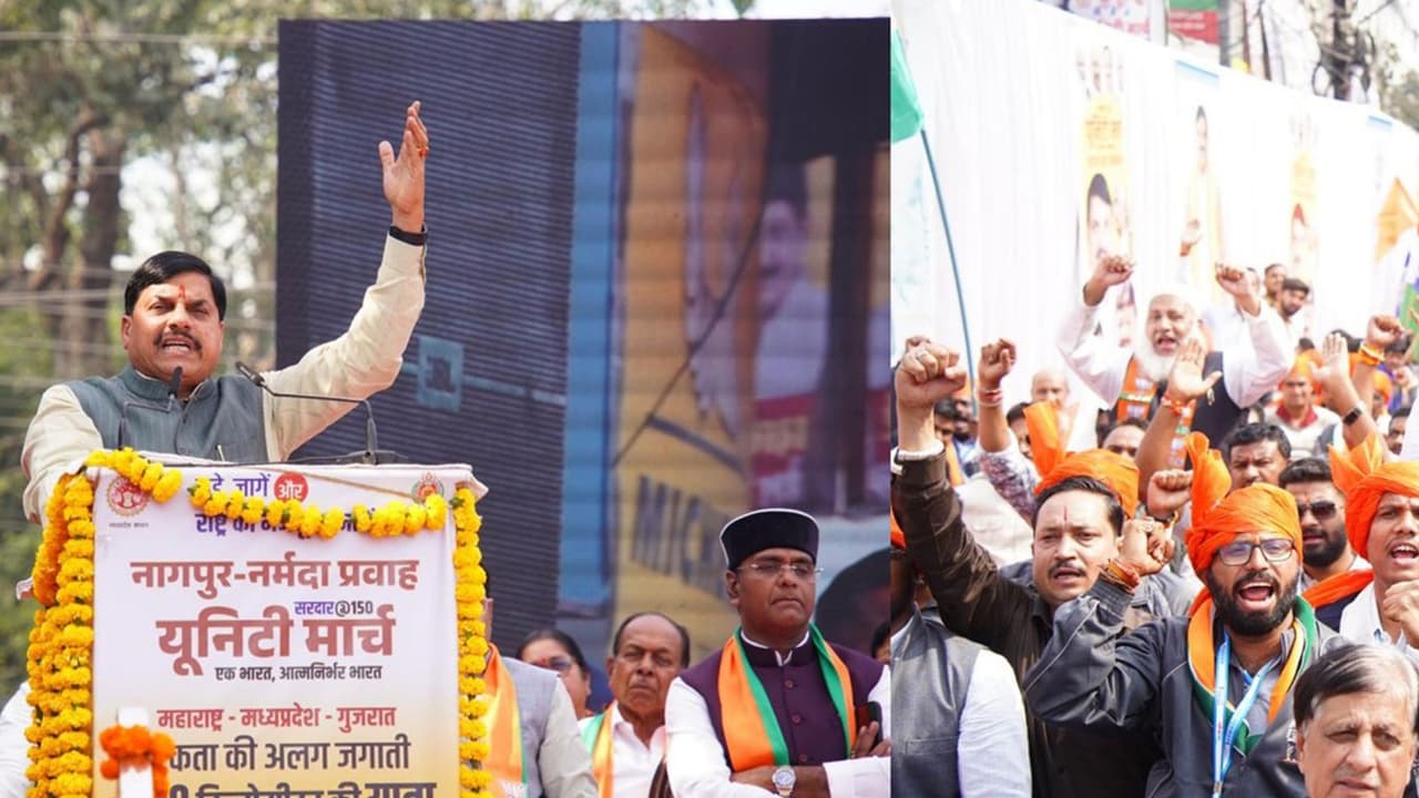 Chief Minister Dr. Yadav has said that with the inspiration of Prime Minister Narendra Modi, the Narmada Flow Unity March Yatra has been started from Nagpur, which reached Indore via Betul from Nagpur. He said that the work done by the iron man Sardar Vallabhbhai Patel by uniting the princely states is unique. For this, we should take inspiration from the great personality Sardar Vallabhbhai Patel. He further said that under the leadership of Prime Minister Narendra Modi, the country is rapidly moving forward on the path of progress and development.