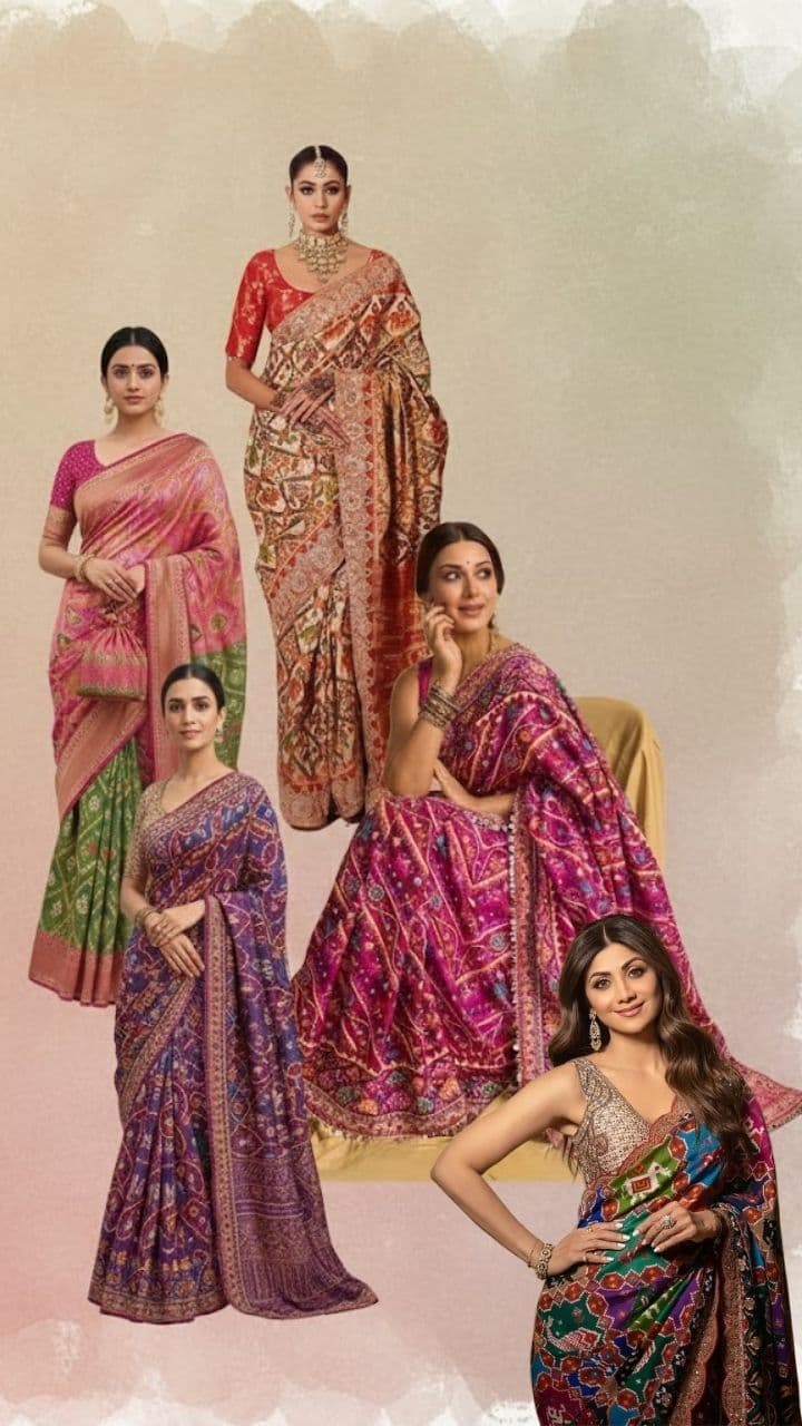 This design of embroidered Patola saree is great for heavy saree wearers and new brides. This design of heavy and fine Patola saree is in trend nowadays.