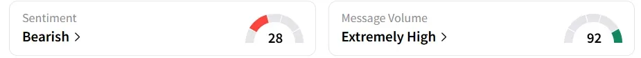 Despite the strong intra-day gains, retail sentiment on Stocktwits turned ‘bearish’ from ‘neutral’ a day earlier. Chatter on the platform was ‘extremely high’.