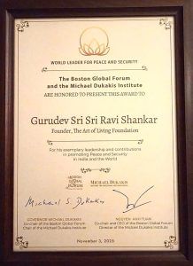 The Boston Global Forum (BGF) and the AI World Society (AIWS) have conferred the 2025 World Leader for Peace and Security Award upon Gurudev Sri Sri Ravi Shankar, recognizing his extraordinary contributions to global peace-building, reconciliation, and humanitarian leadership.