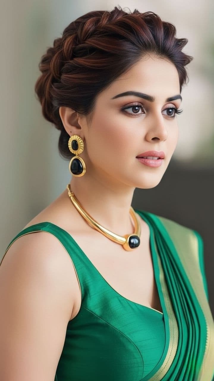 If you want to enhance the traditional look on Republic Day, then make a bun hairstyle with white, orange or green saree. Take out a little strand from the front. Complete the look by applying Gajra.