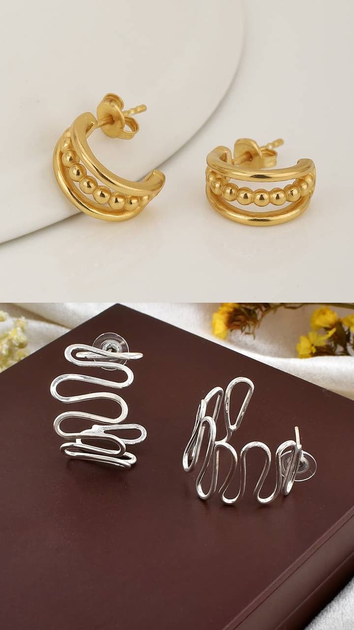 If you want to wear something different, then try the mesh metal half hoops design. It has a light net on the hoops, which makes it unique and trendy. This is perfect for a modern look.