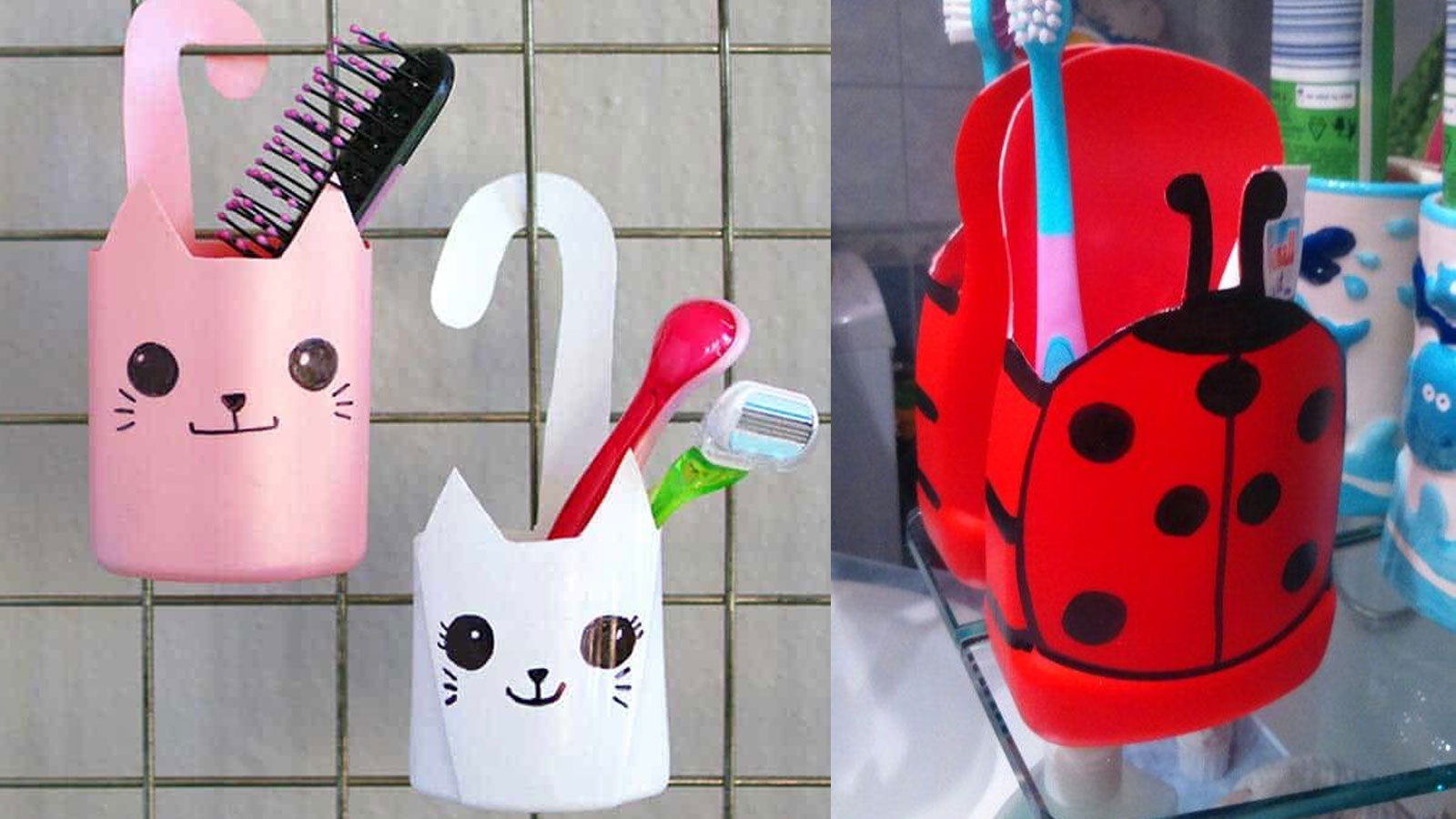 You can make your bathroom organized by cleaning the empty Harpic bottles thoroughly. Make an open part by cutting the bottle from the side. Smooth the edges, hang on a wall or place on a table. Then keep things used in the bathroom like brush, paste, razor etc. in it.