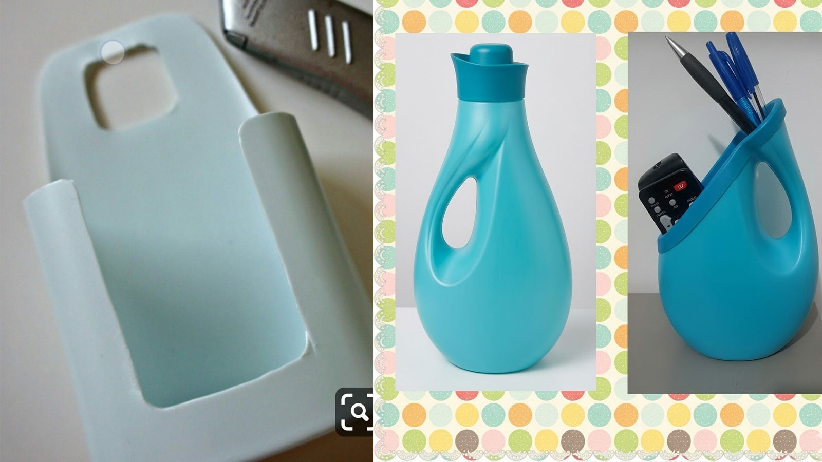 You can also make a stationery holder using an old Harpic bottle. Cut the bottle in half. Paint the outside with color or apply colored paper, then place pens, pencils, brushes, scissors or all stationery items inside it.