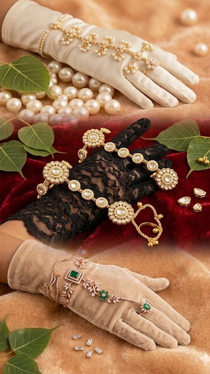 If you want a modern and trendy Hathphool bracelet, then you can look at this design. The silver alloy metal charm bracelet will look perfect on ethnic as well as fusion wear.